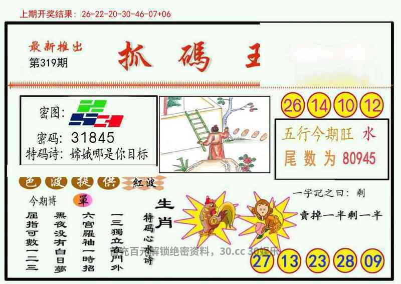 【精解抓码王】开(鸡45) 319期:嫦娥哪是你目标 【主攻抓肖】鼠鸡猴兔龙猪狗羊马 【抓码尾数】04589 【抓码双波】蓝红波 |